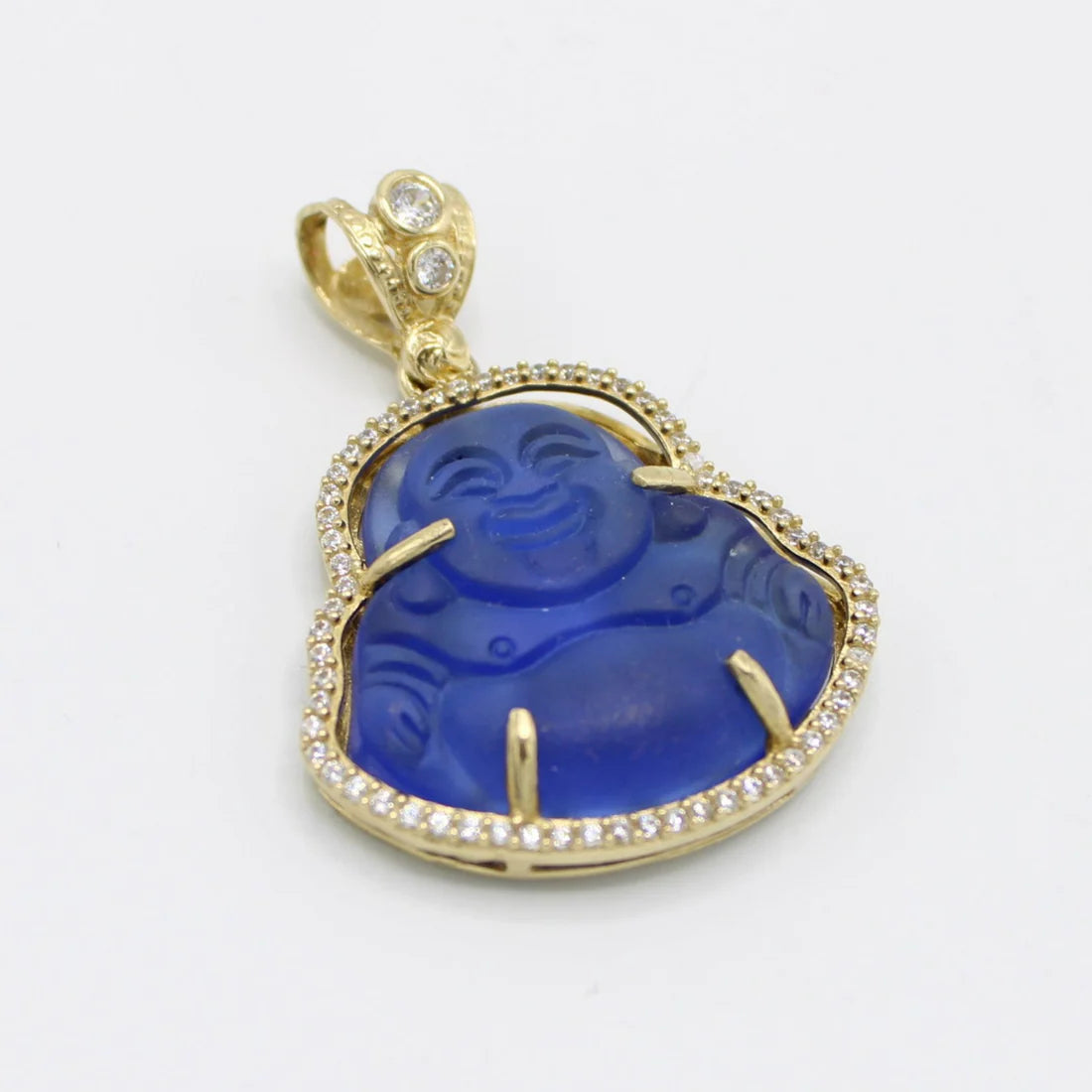 14K Buda Pendant ( Blue ) Cz Stones Yellow Gold