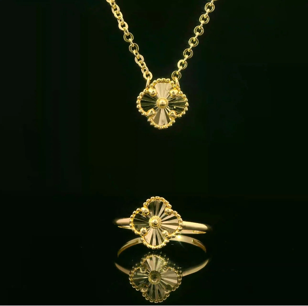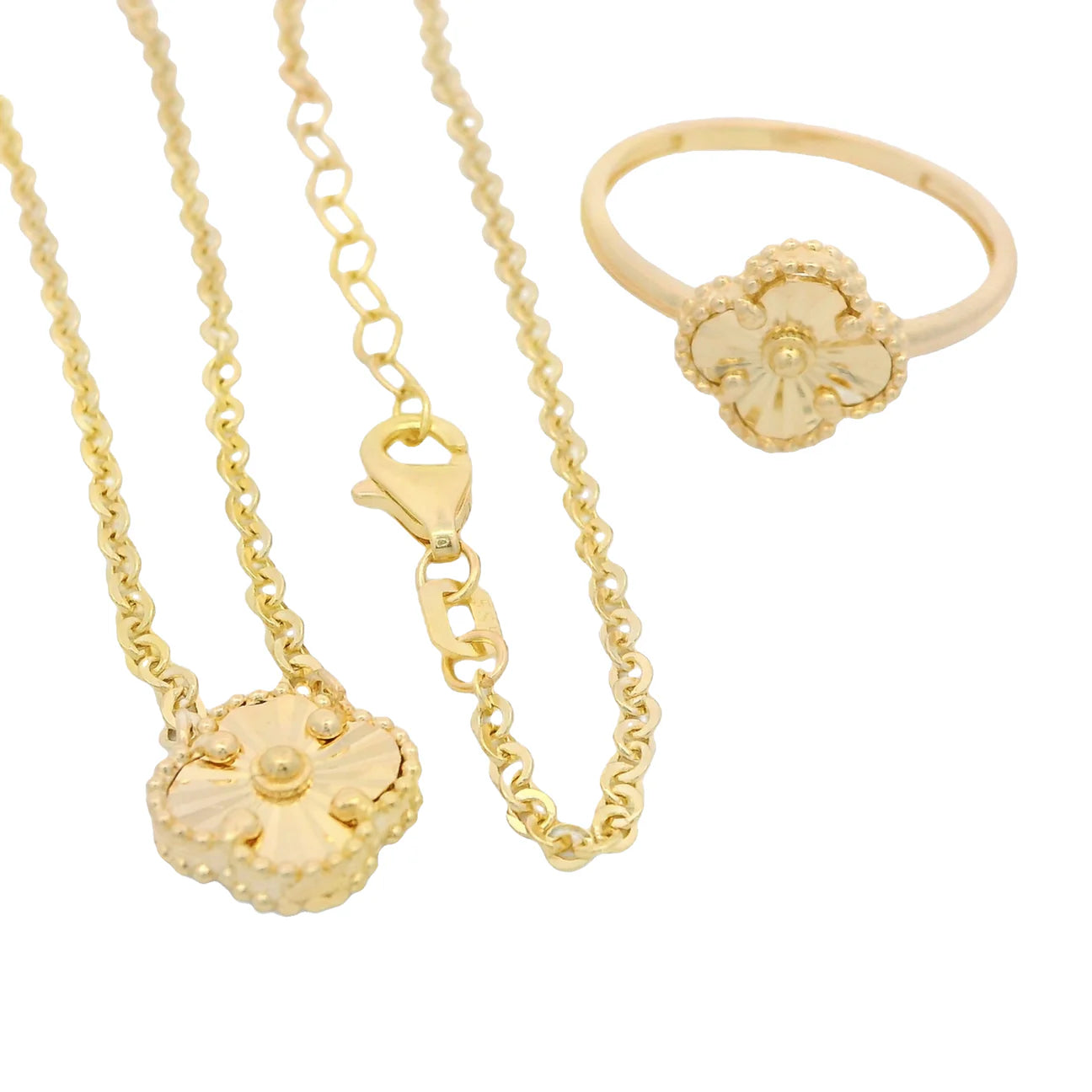 14k Clover Necklace + Ring Set
