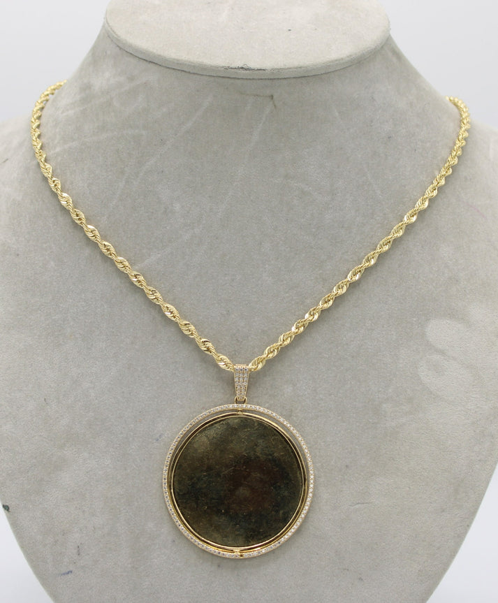 14K Doble Picture Pendant with Rope Chain Yellow Gold