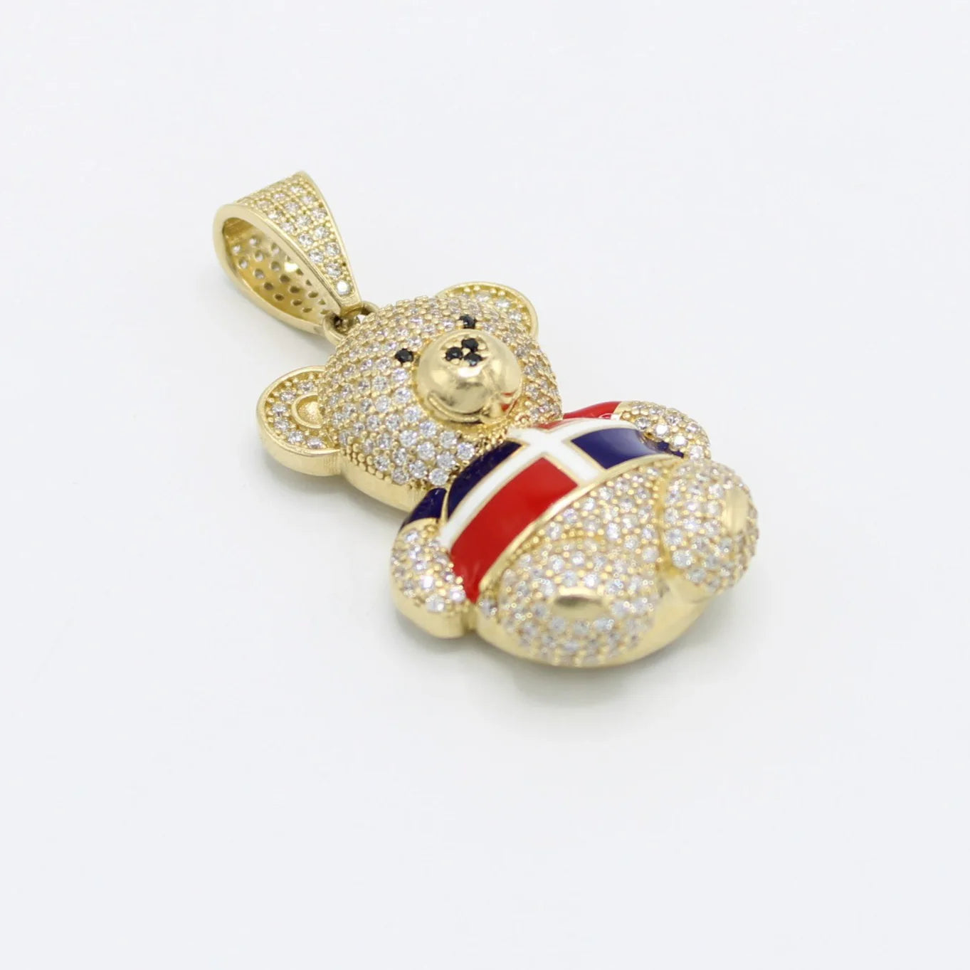 14K Teddy Bear with Dominican Flag Cz Stones Yellow Gold